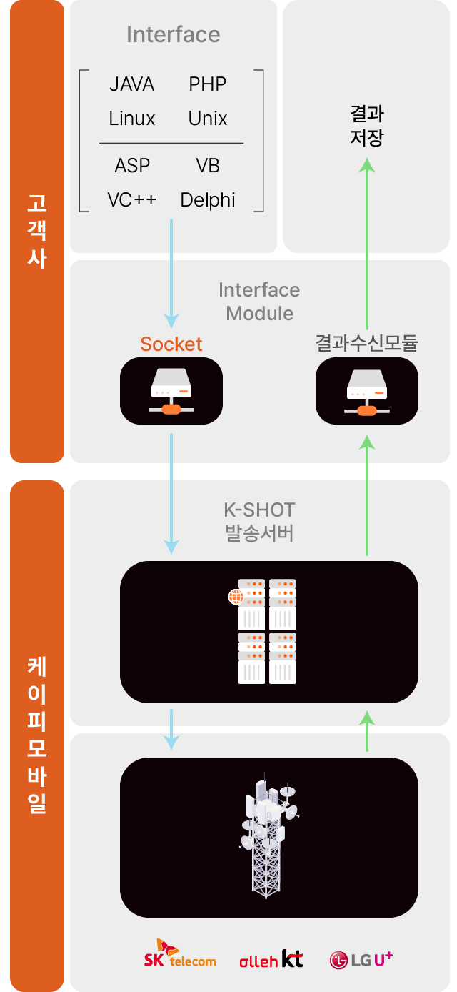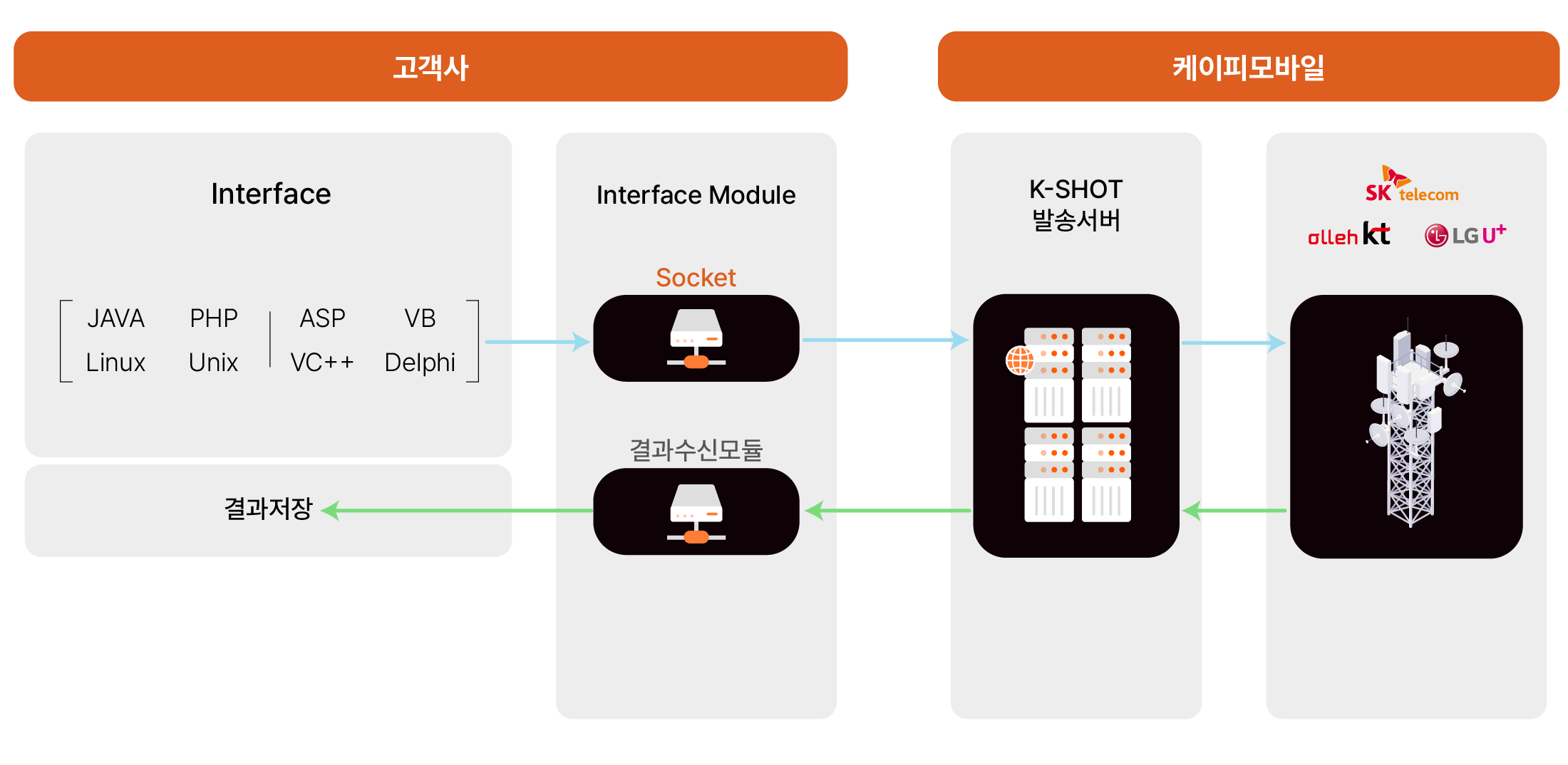 KP Mobile이 제공한 통합 발송 모듈을 이용해 인터페이스를 구현하고