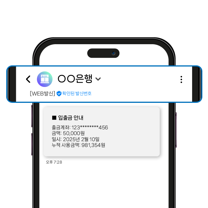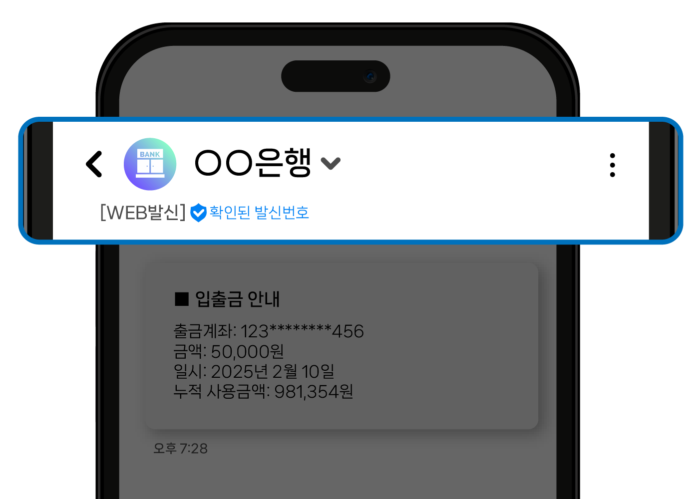 금융/공공기관에서 발송하는 RCS에 표시됩니다.