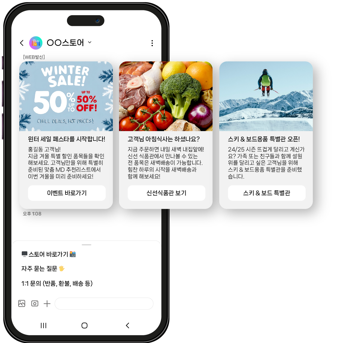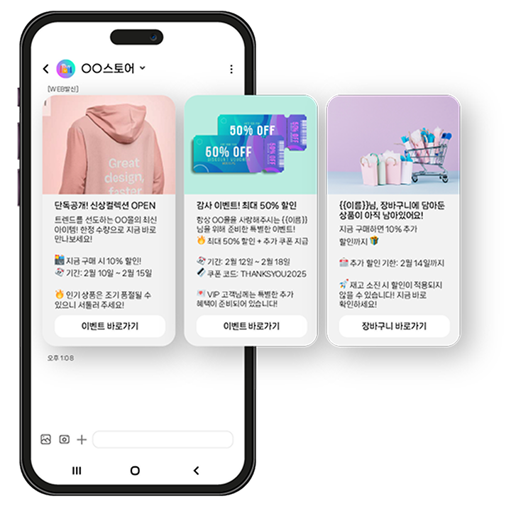 이미지, 동영상, 버튼, 지도 등을 포함한 풍부한 대화형 메시지를 지원하는 차세대 메시징 서비스 입니다.